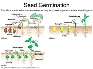 Germination is the process by which a seed grows into a plant. In the process of seed germination, water is absorbed by the seed, which results in the expansion of the seed. After the beginning of water uptake, or imbibition, the radicle (which further develops into the root) emerges from the seed growing deeper in search of water and nutrients this also helps to keep the plant upright as it grows. Then the plumule (which further develops into the stem) grows upwards in search of sunlight by this stage in germination there is no need for the cotyledon, so it falls off and becomes part of the soil. So, the plant grows leaves which aid in photosynthesis which is the process by which the plant makes its own food